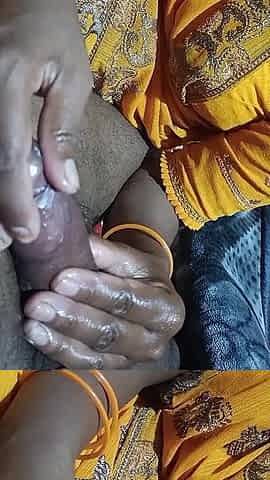 Desi babe gives me a sloppy blowjob and a tight handjob with a big finish