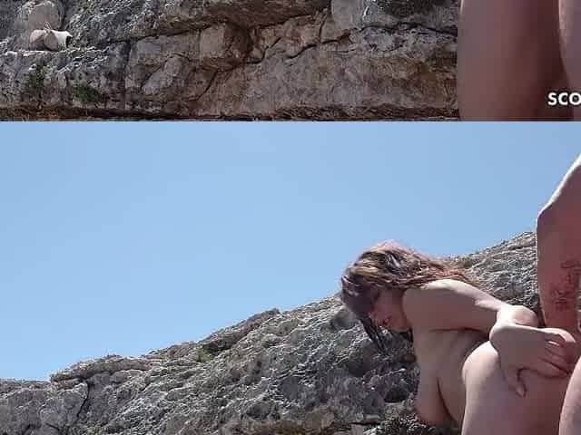 German old guy seduces curvy coed July to fuck on the beach