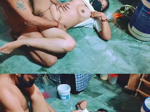 Hot bhabhi caught cheating in the bathroom with amateur homemade action