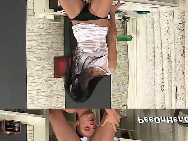 Office manager Regina Noir films her assistant doing yoga in tight pants