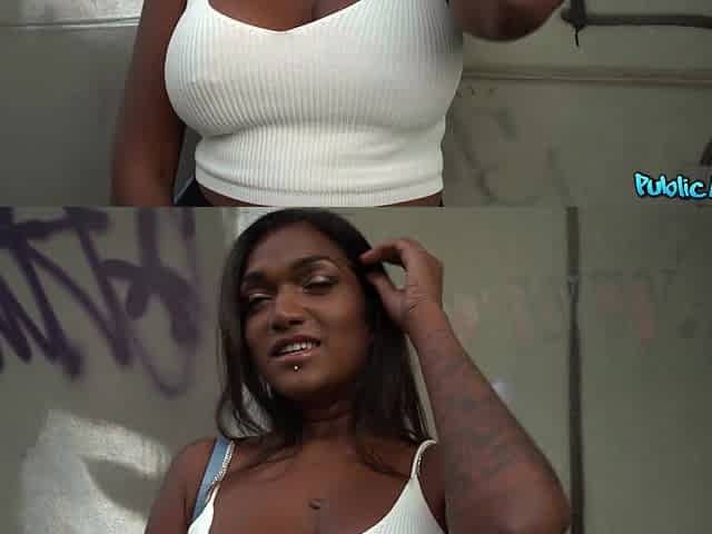 Sexy girl shows tits and fucks for money