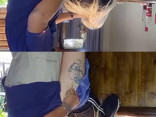 Goky dances and strips while they play the drums, showing off her big booty