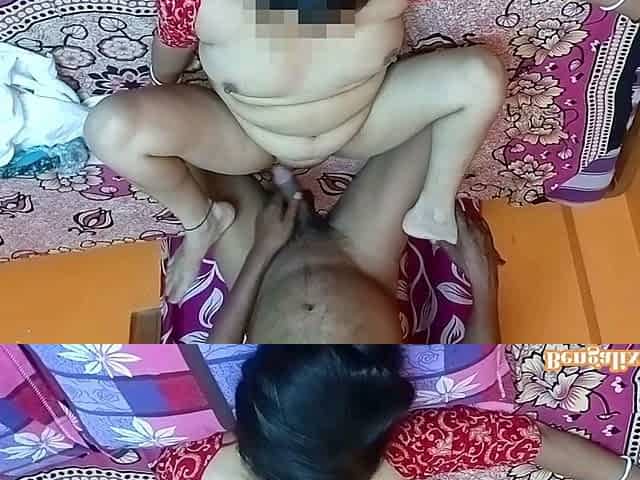 Indian village wife passionately rides her husband in a stunning red saree and pink bra