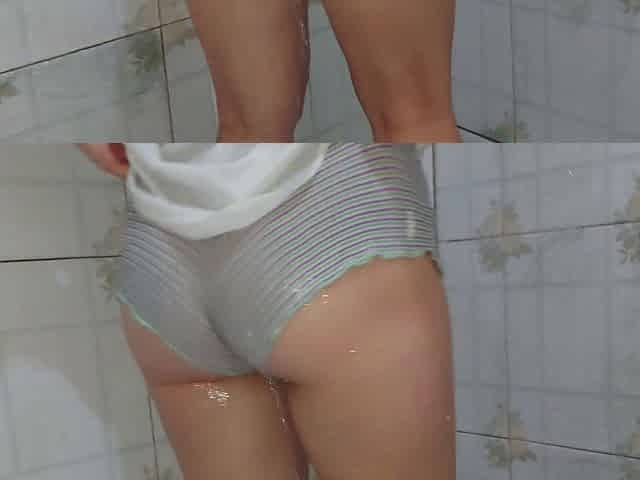 Sexy married woman gets wet in her clingy t-shirt and fucked hard in the steamy shower