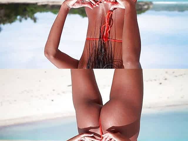 Putri Cinta stripping on a beautiful tropical beach