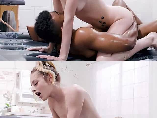 Katherina & Amanda - Erotic Interracial Threesome Massage - Oiled Up Ebony Amanda