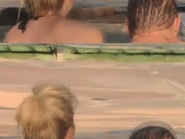 Blonde MILFs giving blowjob in Jacuzzi foursome