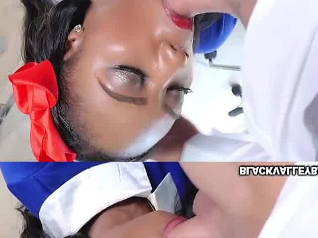 Pale Ebony French Doll Creampied by Horny Black Dude