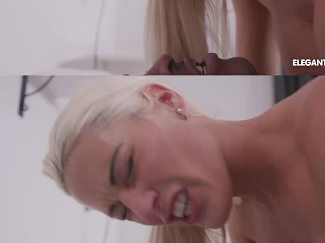 Lovely slender pale blondie Elsa Jean rides massive black cock
