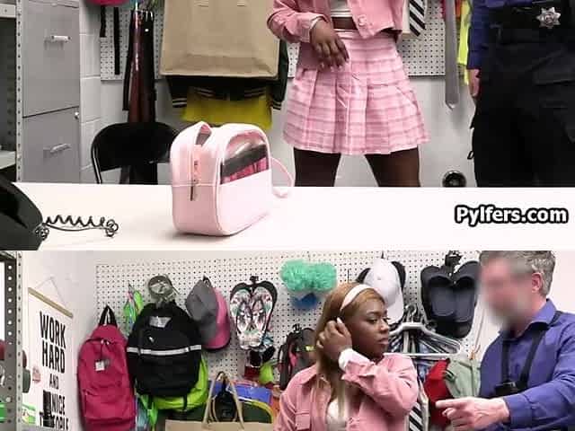 Makeup stealing ebony teenager milks mall cops penis
