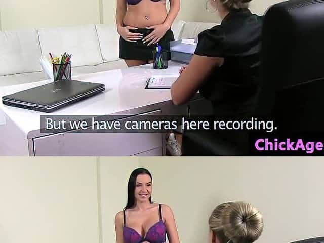 Big tits lesbians fucking on casting interview