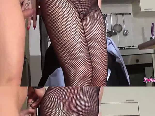 Mature Italian milf with big tits and clit gets fucked in the kitchen