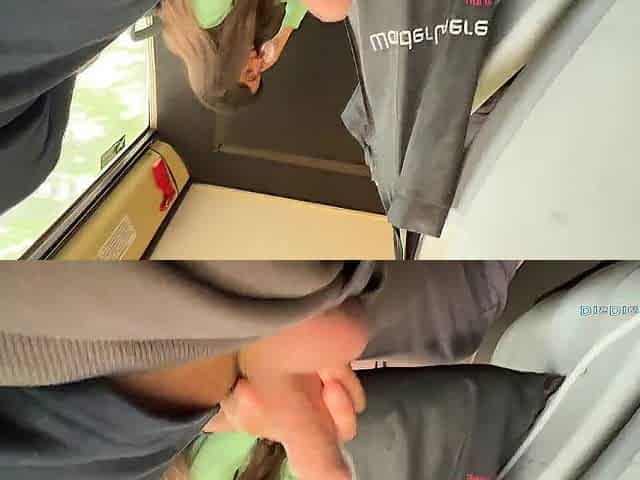 Stranger surprises me with masturbation in a public bus and I aid him jerk off