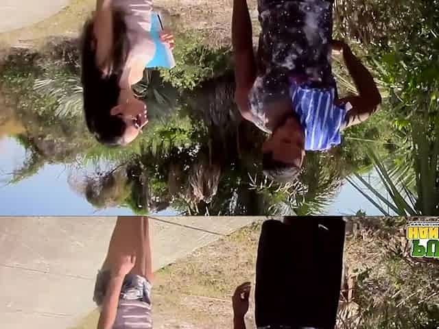Babe facialized outdoors. Babe facialized outdoors in schlong jerking threeway