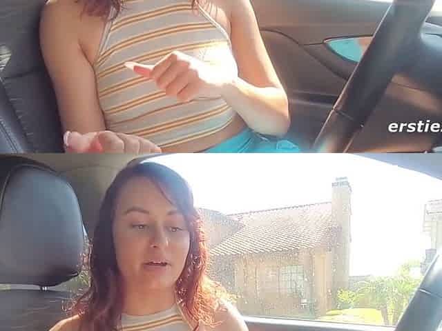 She catches him jacking off in car helps finish him off