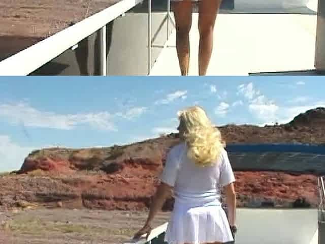 Non stop blonde with big boobs cock jerks off on the bed