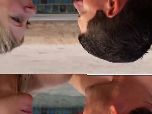 Busty fair haired MILF Holly Kiss fucks with her brutal dude in jacuzzi outdoors