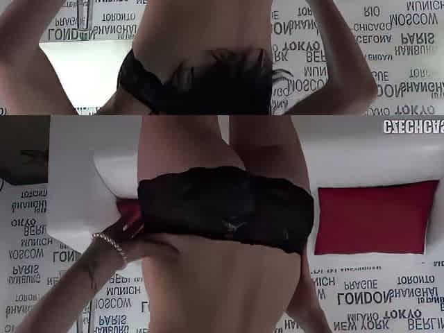 Foxy brunette Jana Mrazkova fingers her twat and shows her hot ass