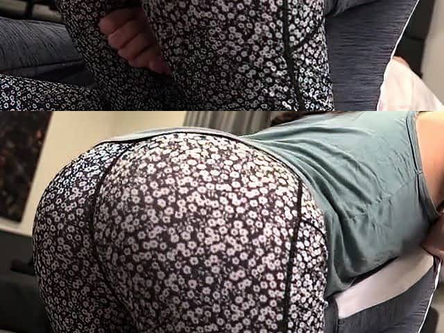 Asian girl with big butt doing assjob on the couch