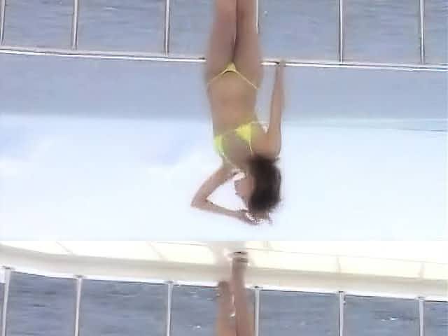 Japanese beauty teasing and rubbing cock in an outdoor pool