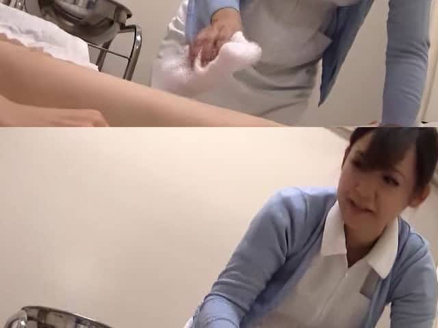 Pretty Japanese nurse takes a long dick in her mouth and makes him cum