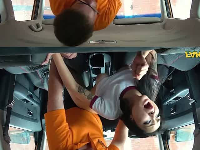 Black haired Asian babe fucked by white cock doggystyle