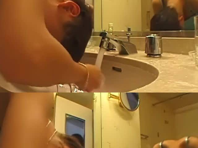 Delightful asian slut taking a cum shower