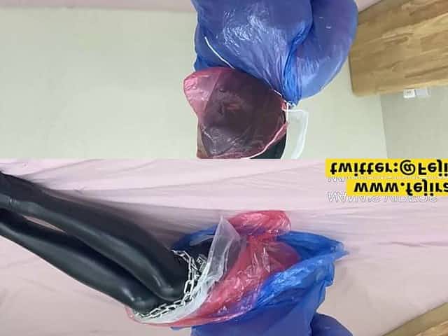 Fejira com Plastic rainwear chain bondage play 2