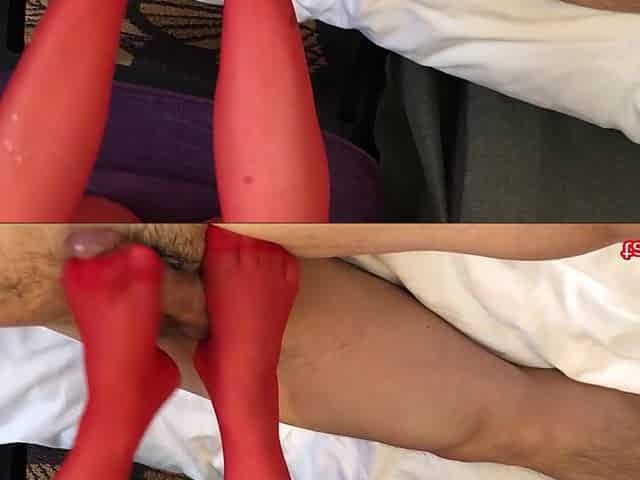 Japanese Foot Job Red Stocking(side Cam)赤ストッキンクの足こきサイトカメラ