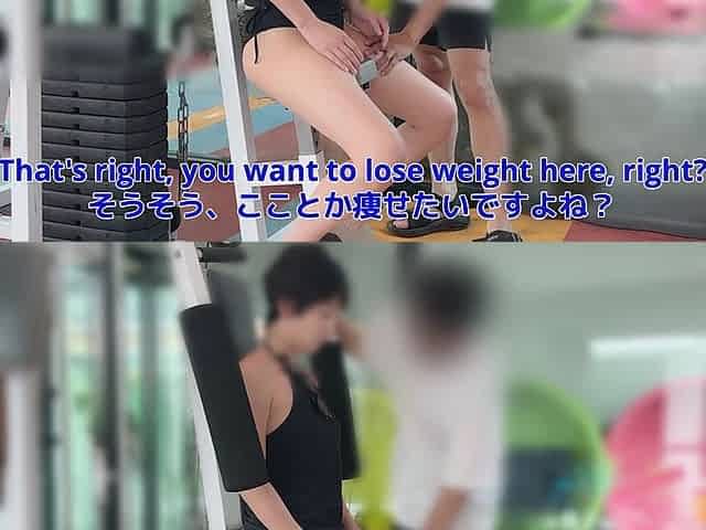 Japanese trainer gets erection at the gym