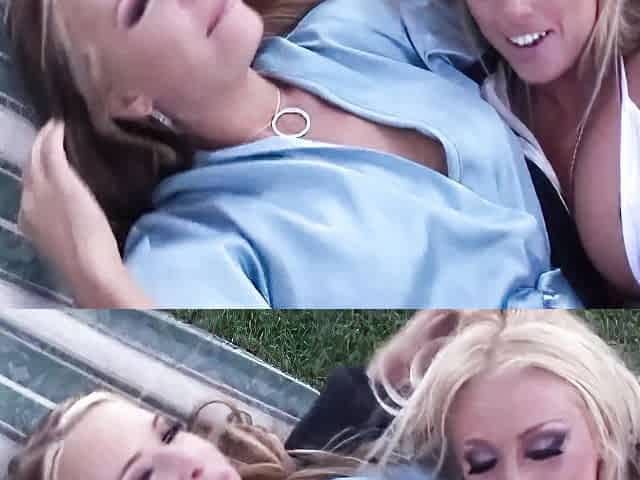 StrapOn Lesbian with big boobs fucks her blonde sexy GF