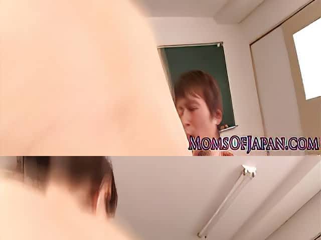 Young Japanese MILF teachers share cock in classroom