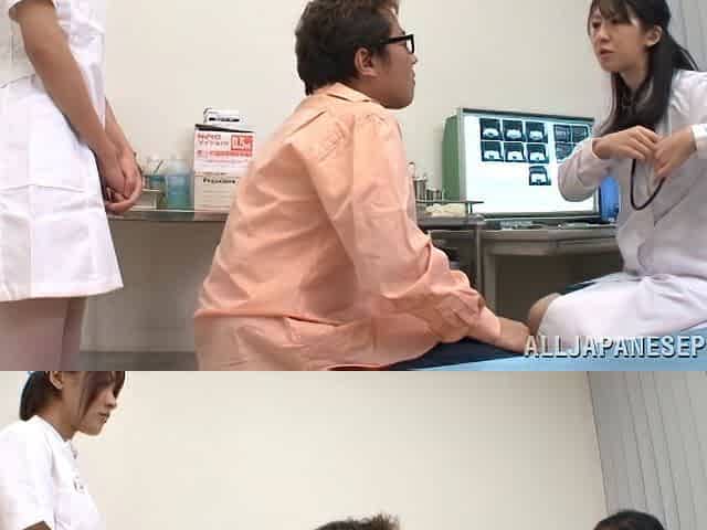 A pair of helpful Asian nurses work his cock and make him better
