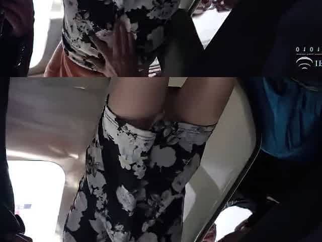 Horny girl fingerfucked to orgasm on bus