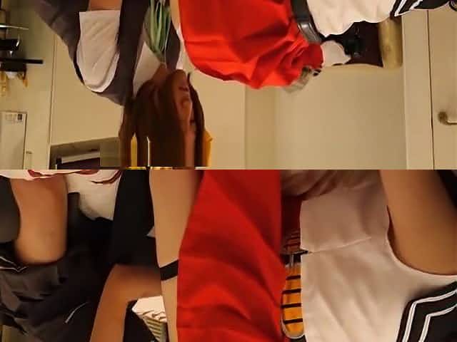 Japanese ladyboy schoolgirl rides cock hard