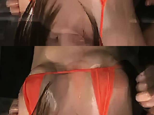 Asian sex slave in latex gets cunt vibrated in chains