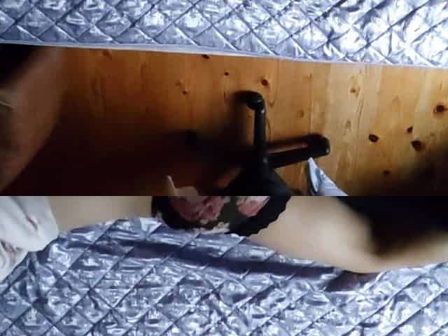 Observing the Maid in a Miniskirt, Wearing No Bra, Wedgie G-string Panties and Knee High Stockings, From Under the Desk