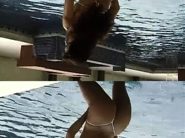 Seductive Raquel drops her clothes and shows off her body by the pool