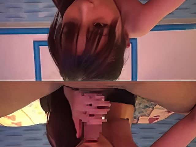 Asian junior student blowjob with erotic eyes