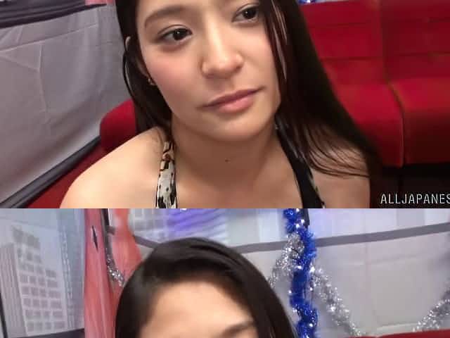 Brunette Japanese teen licks her man's dick and rides him hardcore