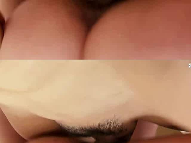 Japanese babe gets her hairy pussy hammered and filled with load in hot threesome