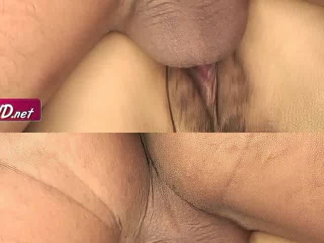 Asian first time hottie with a hairy twat gets fucked hard and eats cum