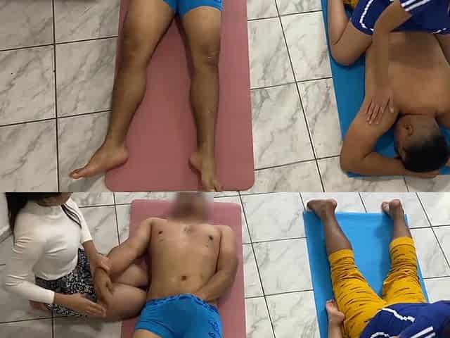 Yoga teacher gropes hot beautiful wife in front of her cuckold boyfriend NTR