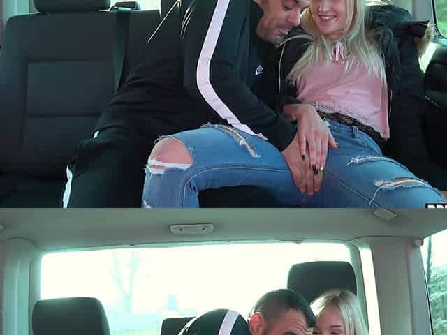 Sexy blonde Daisy Lee gets talked into fucking in the car