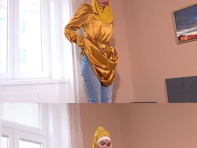 Curvy housewife Mona Azar drops her jeans to be fucked hard