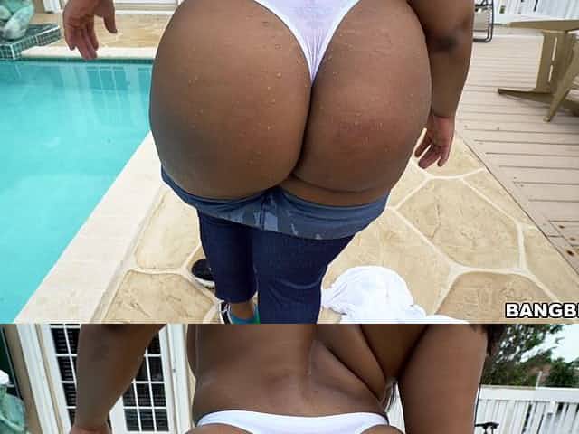 Outdoors fucking by the pool with big butt ebony Ms. Yummy