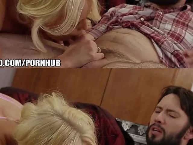 Blonde skkiny amateur teen Mackenzie blows and rides on the couch