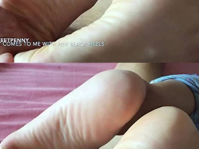 Jenny comes to me with her ebony high heels. Great solejob with soft soles