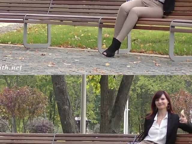 Jeny Smith wears see through pantyhose suit in the city