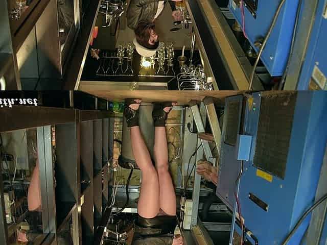 Jeny Smith looses her clothes and sneaks naked in the underground corridors.